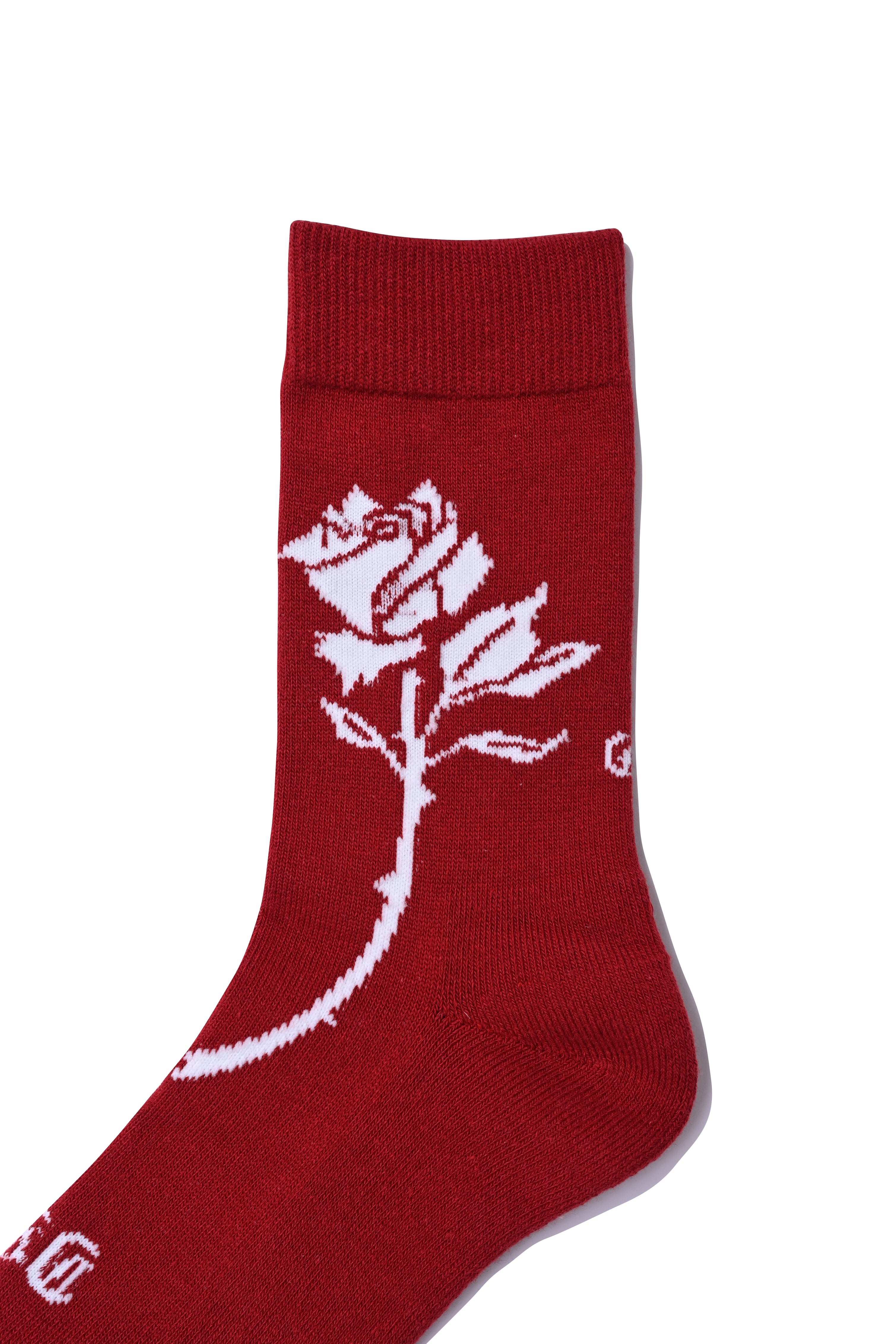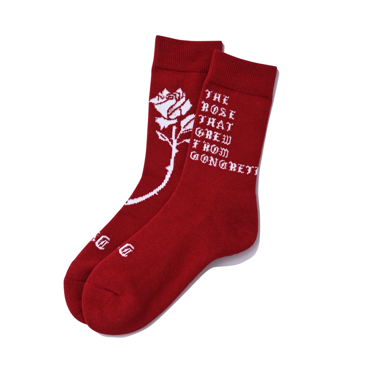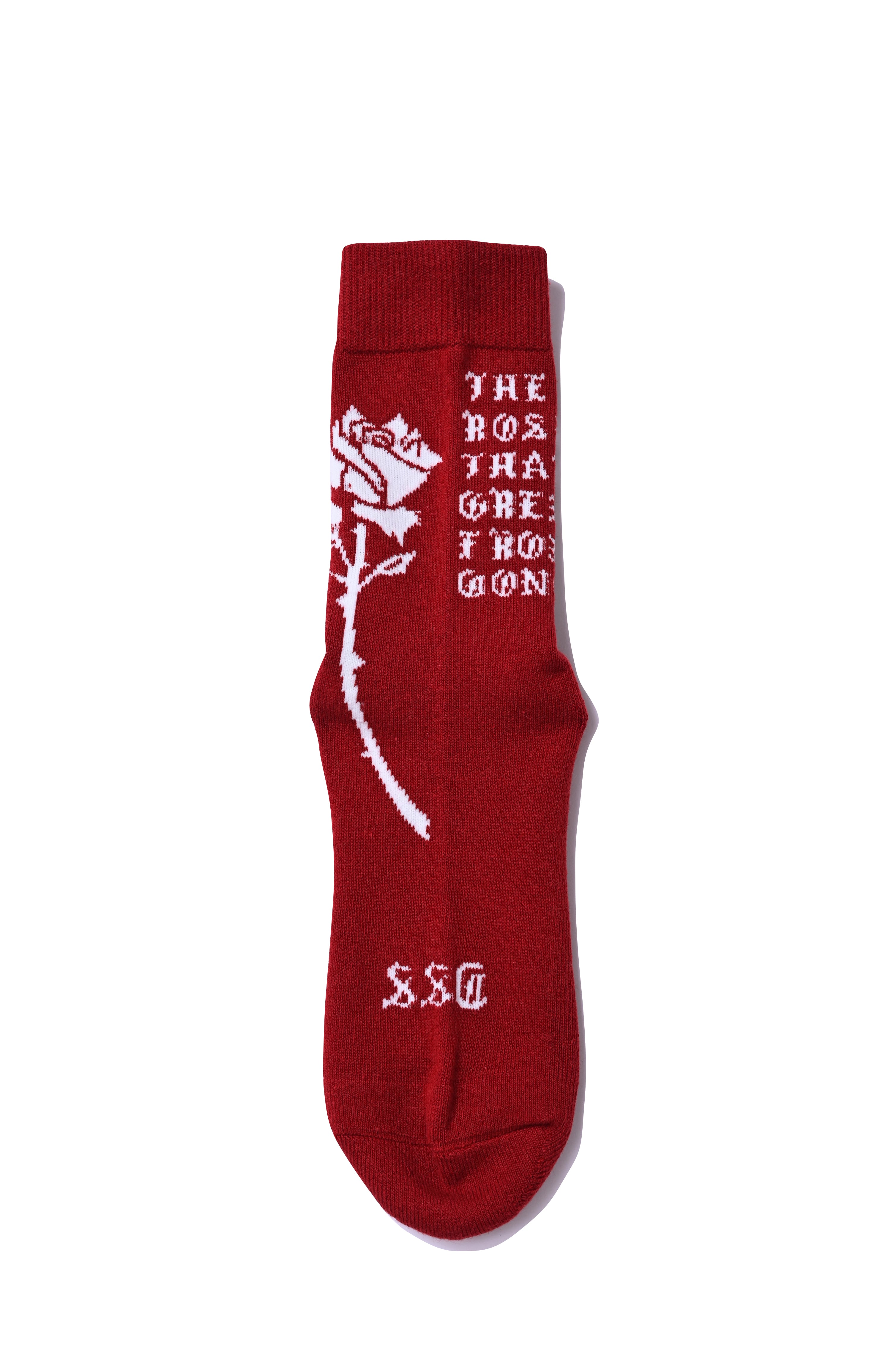 ローカットスニーカー着用時に、パンツの裾がふと捲れた際に 靴に薔薇を挿しているように見えるバランスでデザインしました。