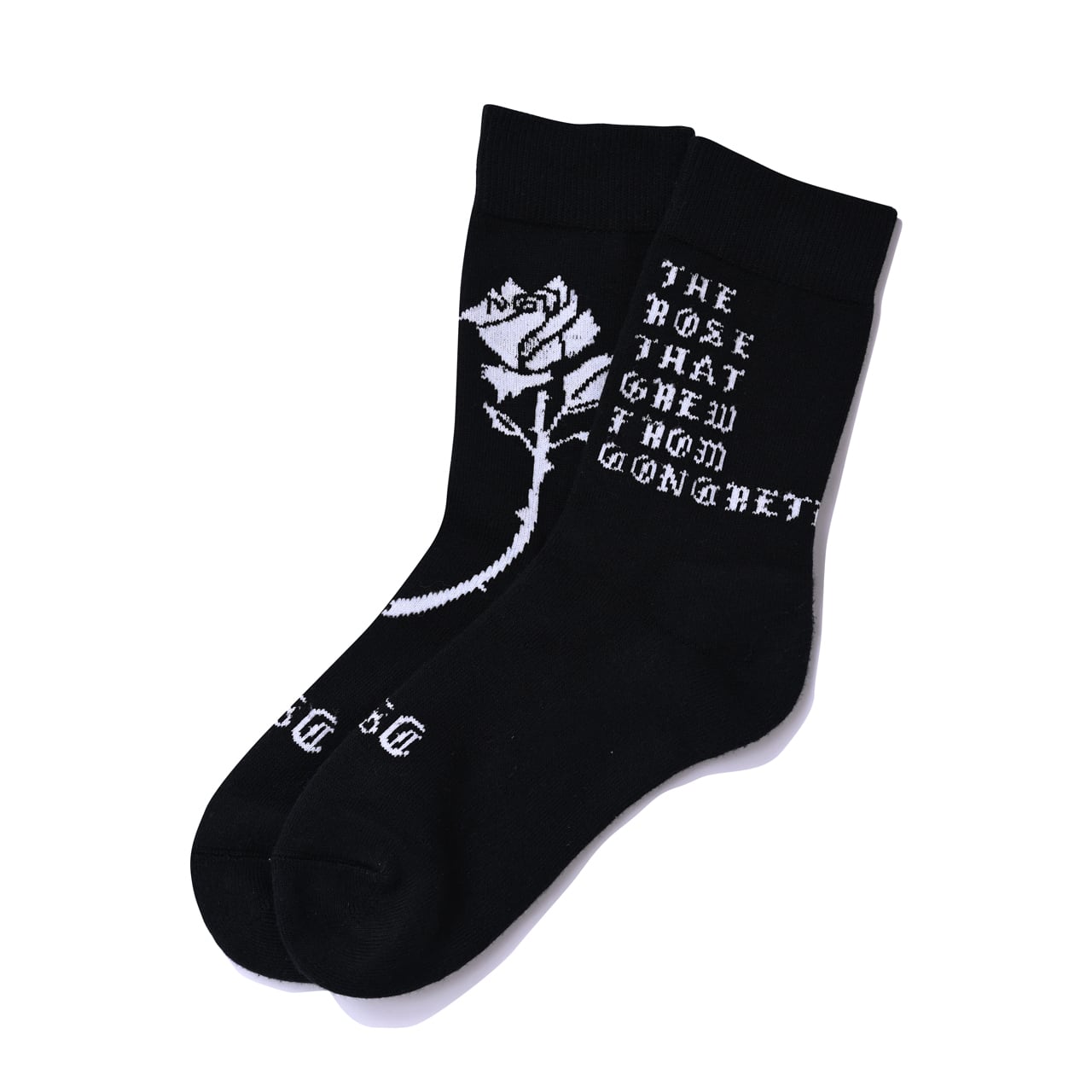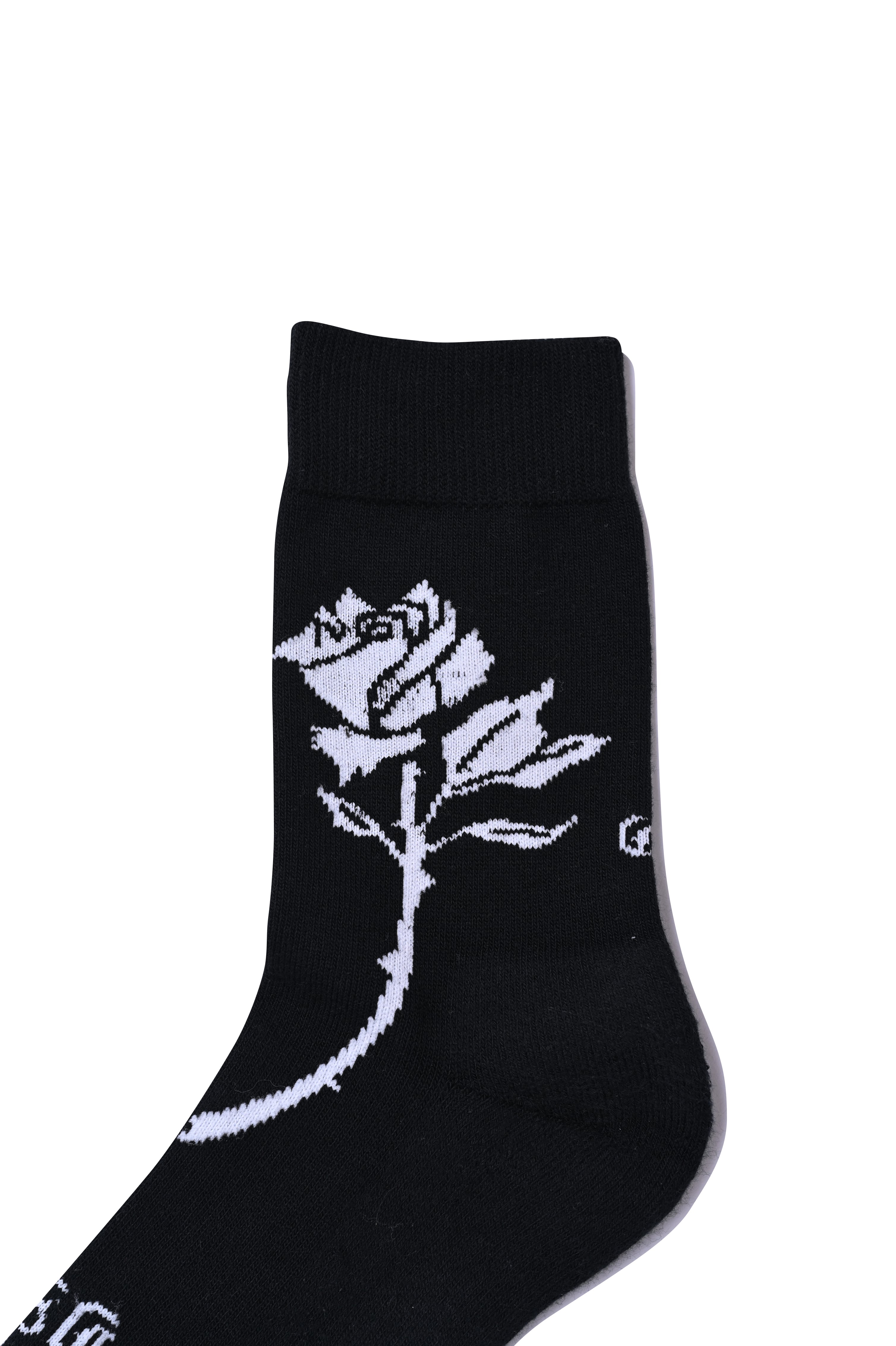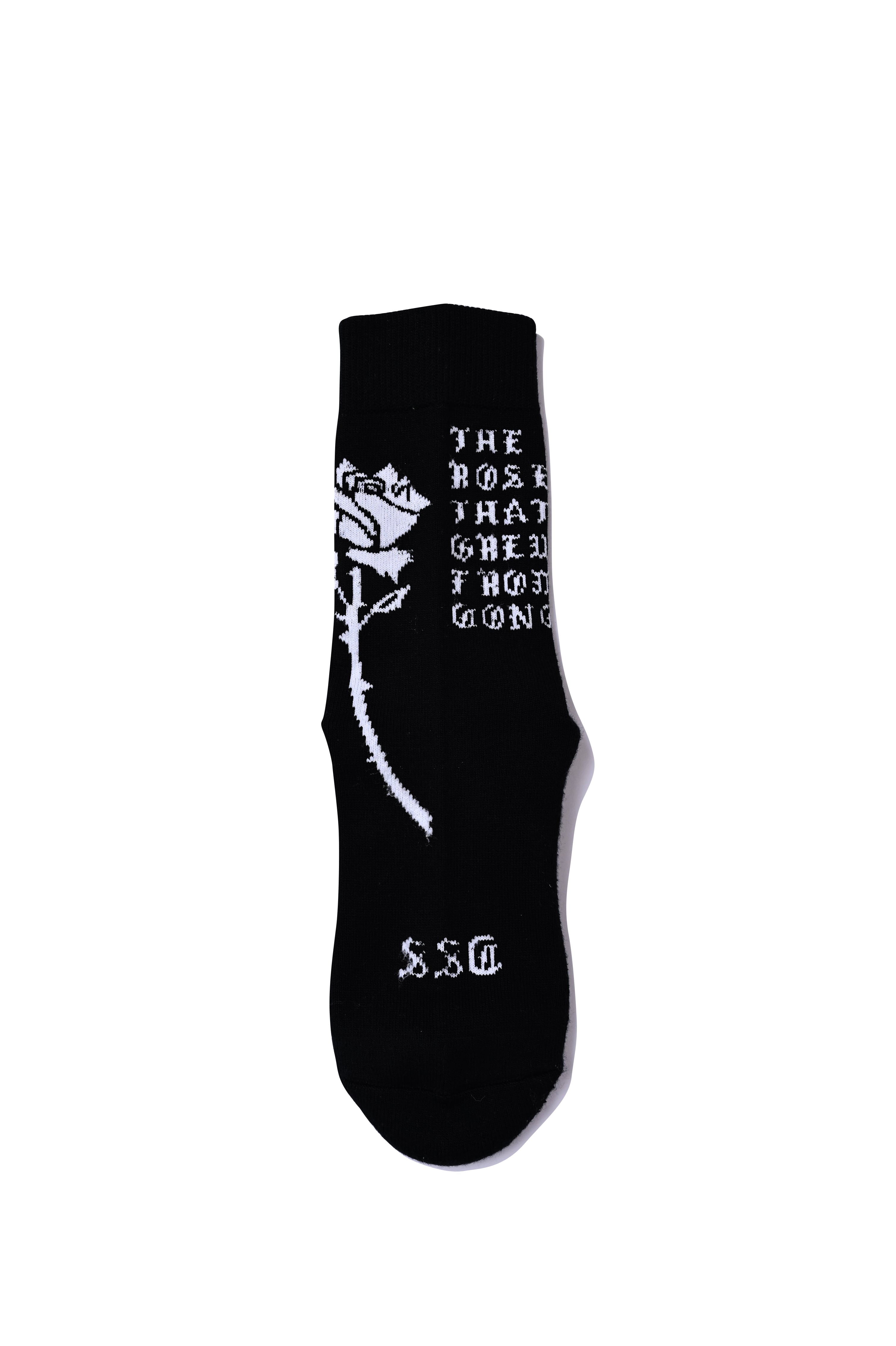 ローカットスニーカー着用時に、パンツの裾がふと捲れた際に 靴に薔薇を挿しているように見えるバランスでデザインしました。